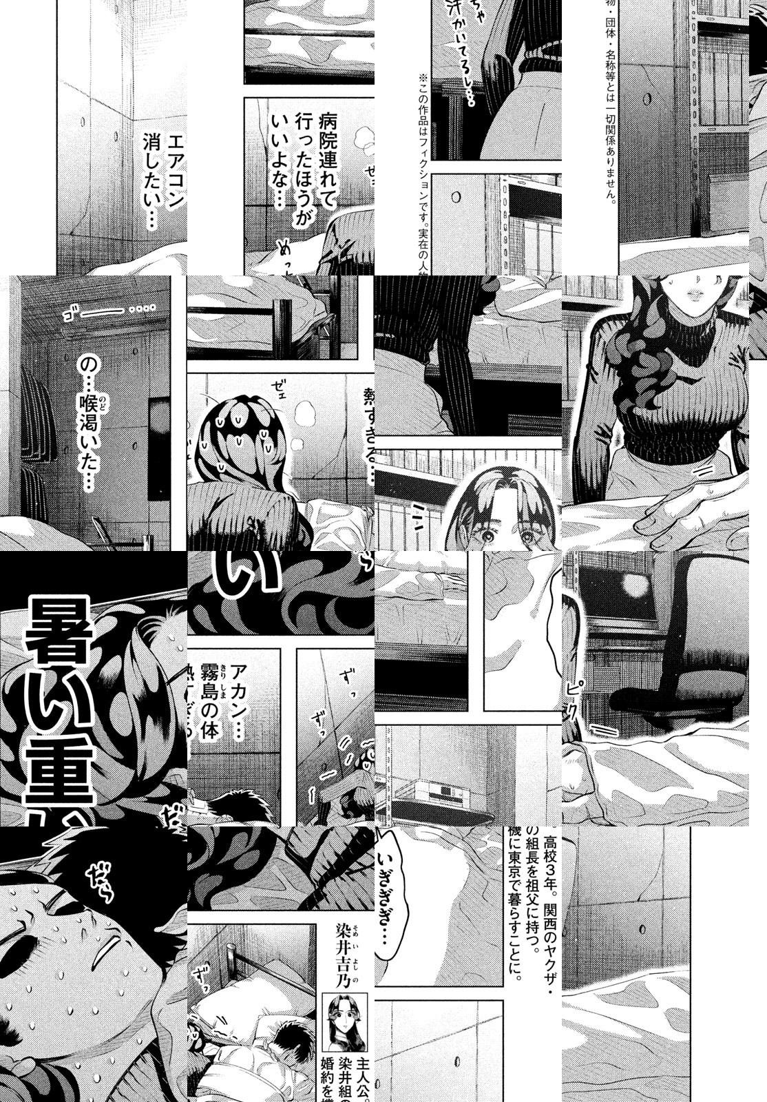 極道の家で生まれ育った女子高生、染井吉乃。家庭環境は特殊でも、おとなしく平穏に日々を過ごしてきた。婚約者の深山霧島(みやま・きりしま)と出会うまでは――!デビュー作『春の呪い』で「このマンガがすごい!2017」(オンナ編)2位にランクインした小西明日翔の最新作。はみ出し者たちが織りなす、スリルと笑いが融合した極道エンタメがここに誕生!!