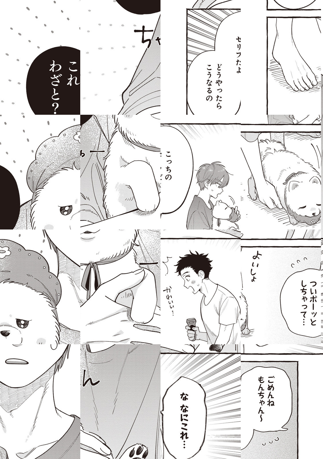 見た目も性格も正反対な男女と2匹の犬が、散歩中に出会うーーー。 もふもふ小型犬 × びびりな彼と、こわもて大型犬 × パワーな彼女… 画面いっぱいのギャップ萌えにほっこりすること間違いなしっ♪