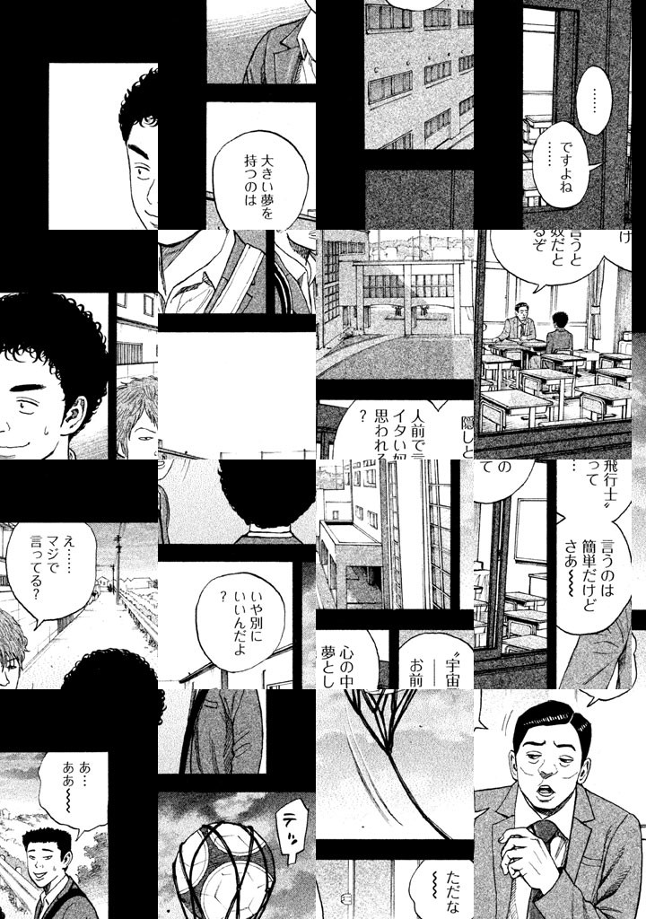 幼少時代、星空を眺めながら約束を交わした兄・六太と弟・日々人。2025年、弟は約束どおり宇宙飛行士となり、月面の第1次長期滞在クルーの一員となっていた。一方、会社をクビになり、無職の兄・六太。弟からの1通のメールで、兄は再び宇宙を目指しはじめる。