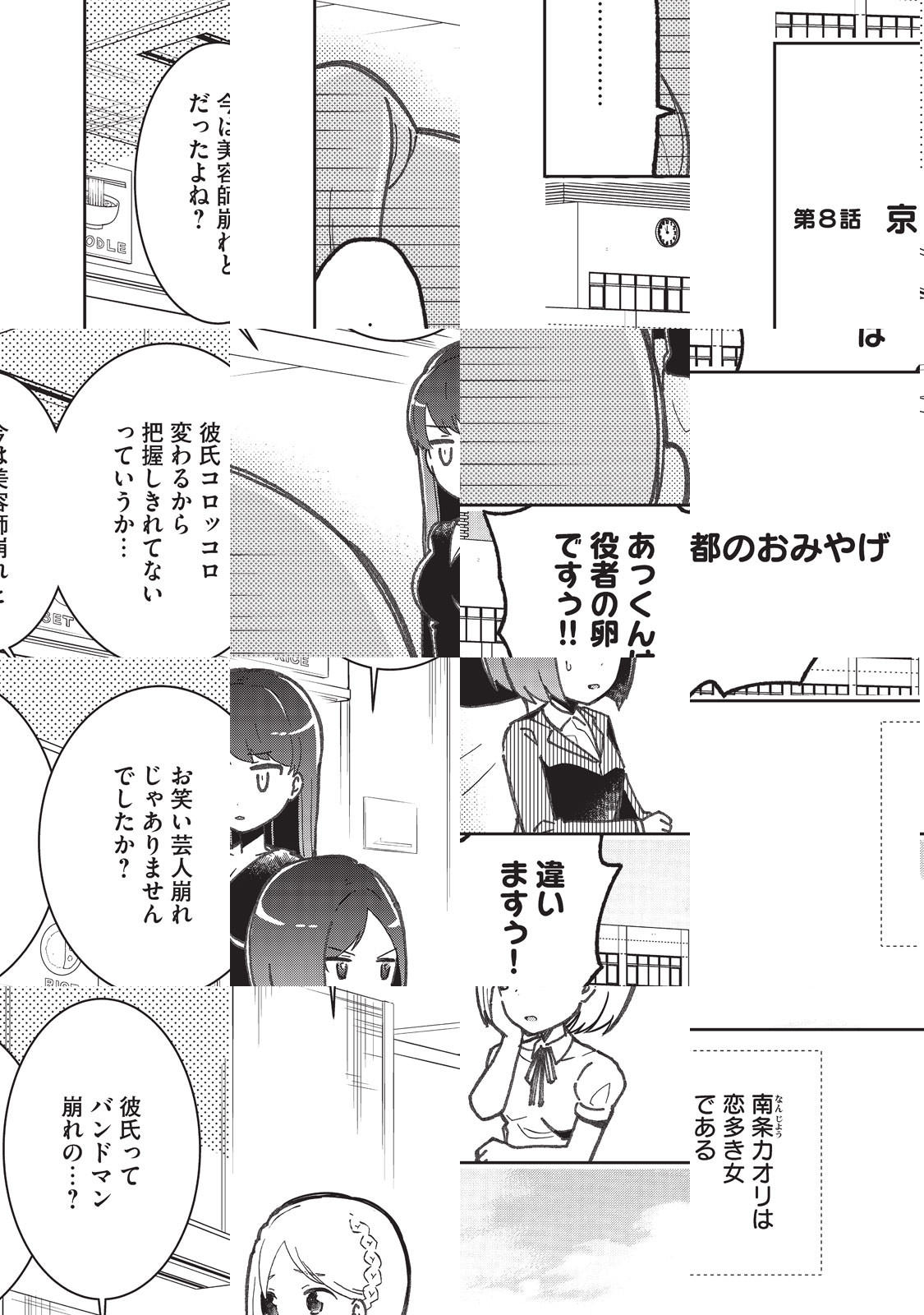 極めてみせますみやげ道! 出張で全国各地に飛び回る大学職員・基山トウコ。ソツなく仕事をこなす彼女の最大の悩みごとは……出張先でのおみやげ選び。舌の肥えた同僚相手に、さて今回はどんなおみやげを買って帰ろうか? 仕事以外に不器用な女子が、食通の課長への愛(?)も育てつつモリモリ働くショートコメディ!