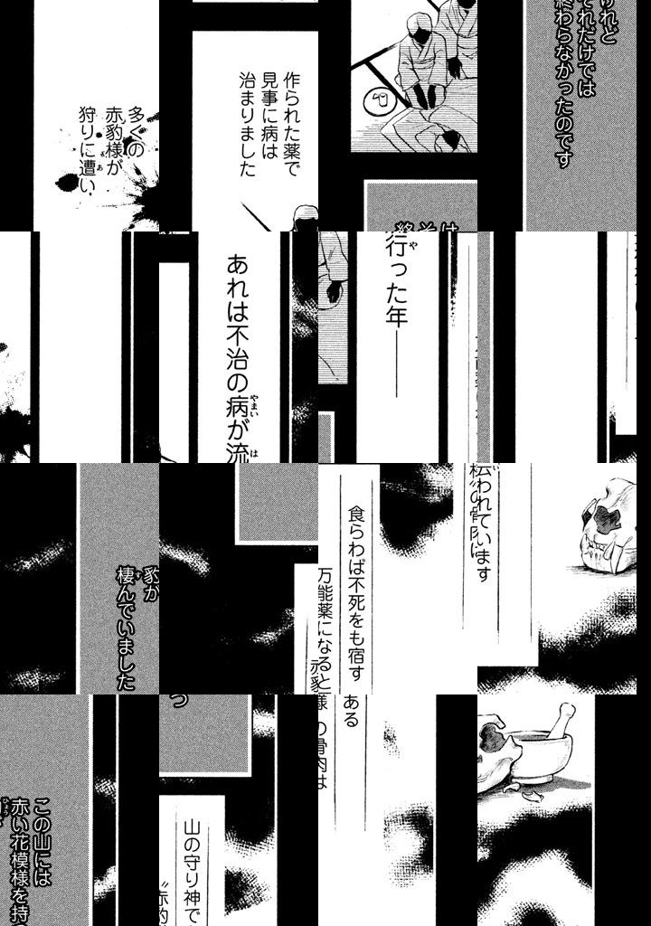 「秘密を暴くなら、私はあなたを殺します」山で遭難した高遠は、右目の下に赤い痣を持つ女性・律に助けられる。「食らえば万能の薬となる」赤豹の伝説を知った高遠は、熱に浮かされたかのように、律を探し続ける。伝承に囚われた男女のラブロマンス、開幕!!