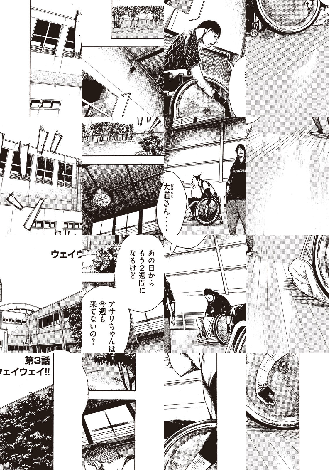 ある事故がきっかけで車椅子生活を送る女子高生・海野アサリ。人間関係の衝突を避けてきた彼女はある日、特殊な車椅子を操る白川と川平に出会う。彼らに連れて行かれた体育館で行われていたのは、障がい者スポーツの中で唯一“ぶつかり合い”が許された競技・ウィルチェアーラグビーだった――。仲間やライバルとぶつかり合い、成長していく心と絆!『ギャングース』の肥谷圭介が挑む、超本格パラリンピックスポーツ青春譚、開幕!!