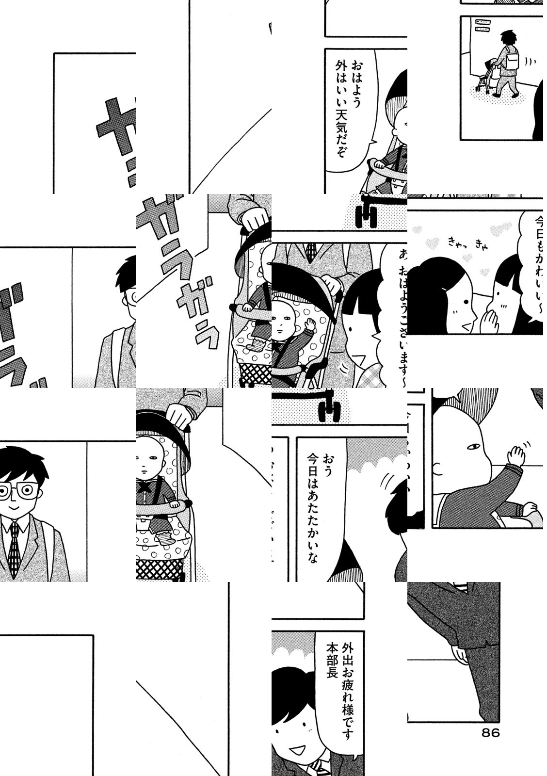 NHKでテレビアニメ化! 株式会社モアイに勤める武田本部長47歳。ある朝突然、頭の中はそのままで体だけが赤ん坊という状態に……。どうやら生後8ヵ月ぐらいの大きさらしい。部下の坂井部長40歳、天野課長35歳、西浦平社員28歳による社内育児スタートです!