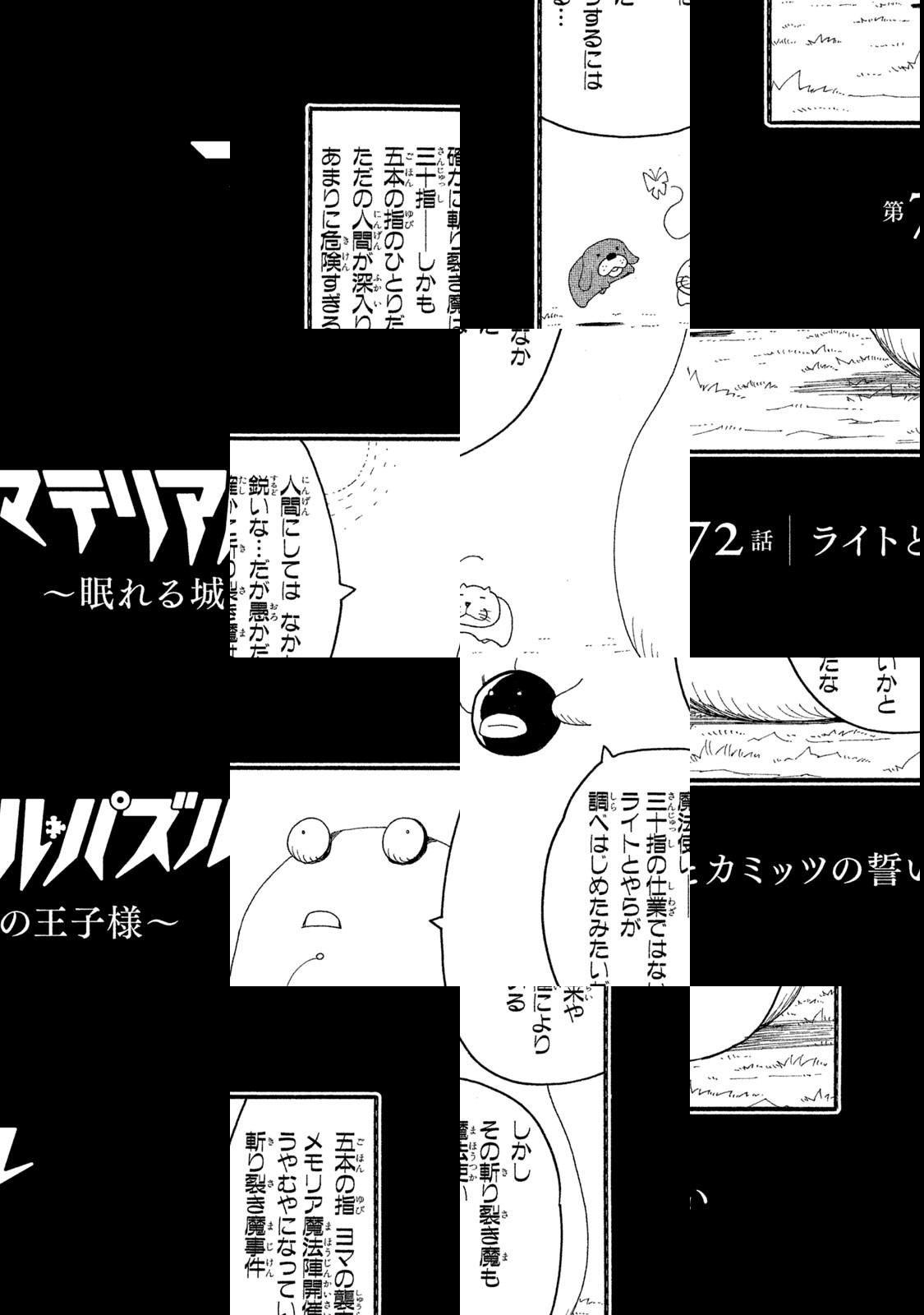 未完のファンタジー巨編を、描き下ろし要素を加えて電書完全版として再編集。100年以上前に起きた惨劇の後、不老不死の身体に3つの魂を共有することになったティトォ/アクア/プリセラ。修行の日々を経て、彼らは究極の力である魔法(マテリアル・パズル)を扱うまでになった。一方、辺境の村に生えた巨大茸を退治するため、村一番の強者・少年ミカゼは魔法使いを探し始める。両者の出会いが、すべての物語の始まりとなる―。