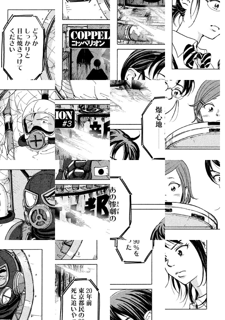 時は西暦2036年。東京は原発事故による放射能汚染で封鎖されていた。そんな死都・東京に3人の女子高生が送りこまれる。彼女たちの名は[COPPELIONーコッペリオンー]。遺伝子操作によって生まれつき放射能の抗体を持つ、陸上自衛隊・第三師団所属の特殊部隊である。果たして、どんな運命が彼女たちを待ち受けるのか!? キケンな旅が今、始まるーーー!!