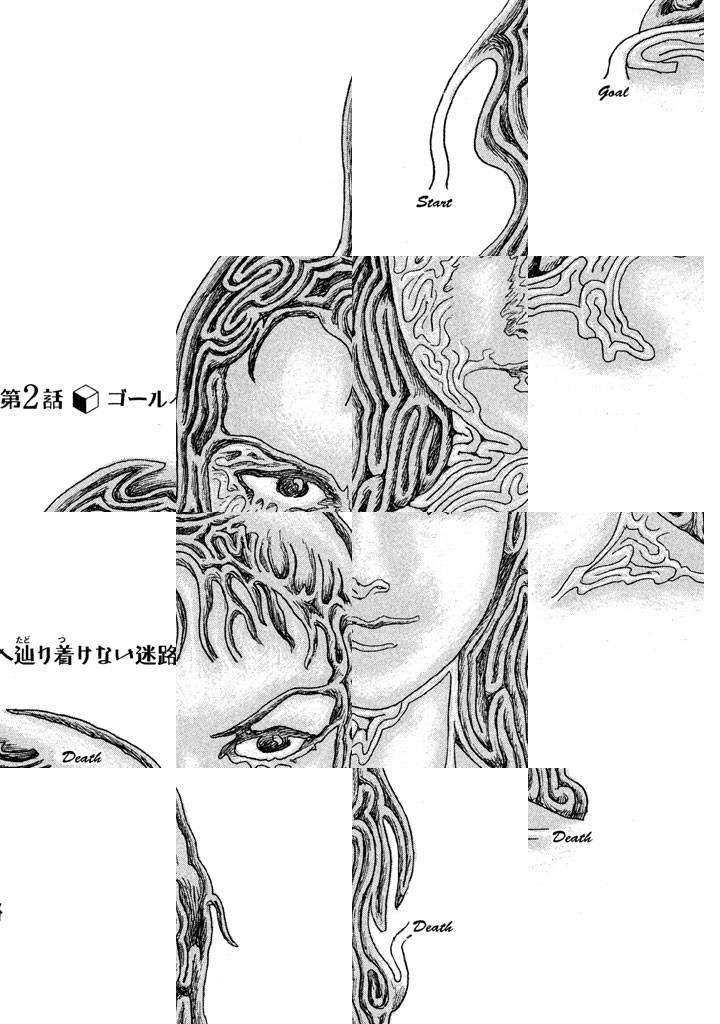 差出人不明で届いた「パズル」とチケットに導かれるように、奇妙な四角い館に集まった7人。興味本位で来たという謎の女も加わり、中に入った彼らを待ち受けていたのは人形のような美少女と、想像を絶する迷宮だった。パズルを解かなければ出られない。解けば、体の一部が消える! 彼らは脱出できるのか? そして「招待主」は何者なのか? 幻想漫画の巨匠が仕掛ける状況限定(ソリッド・シチュエーション)型サバイバルホラー!