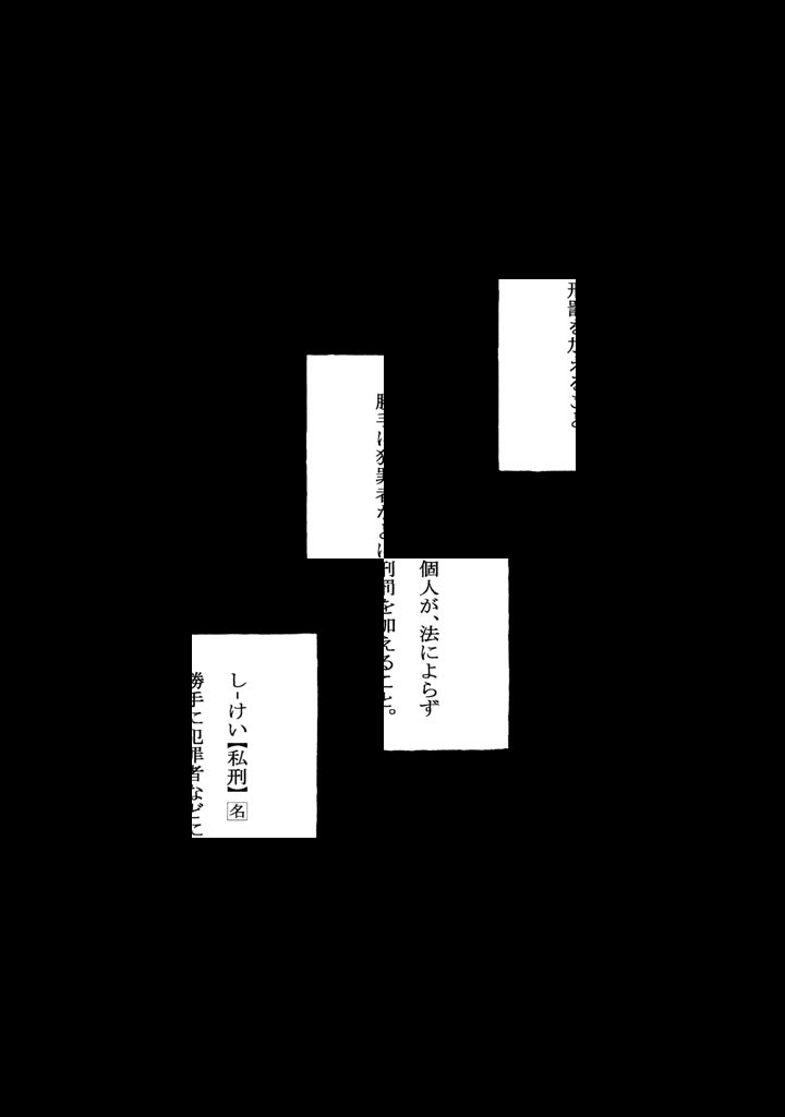 超戦慄連続猟奇サスペンスホラー、絶望大解禁!!THE SERIAL KILLER IS LAUGHING IN THE RAIN.“ドッグフードの刑”―――。“母の痛みを知りましょうの刑”―――。“均等の愛の刑”―――。“針千本のーますの刑”―――。“ずっと美しくの刑”―――。悪魔の蛙男、”私刑”執行。