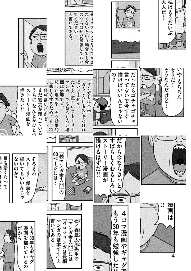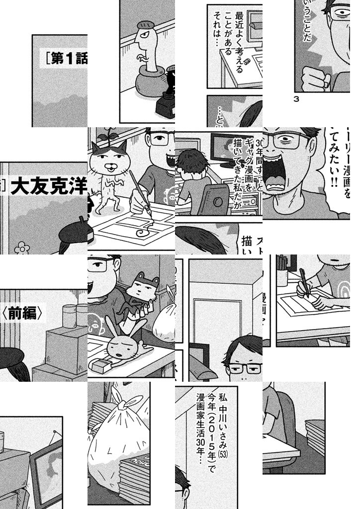 『クマのプー太郎』などの作品で、‘80年代の「不条理ギャグブーム」を牽引してきた漫画家・中川いさみ。デビュー30年を迎えたベテラン作家が目指すのは、ストーリー漫画家としての再デビュー。今年で五十ウン歳、「天命を知った」男がモガき、モダえるさまを追った完全ドキュメント漫画がはじまった!! そんな男を指導するため、大友克洋、松本大洋、ちばてつや、弘兼憲史、諸星大二郎など、そうそうたるメンツが大集結!