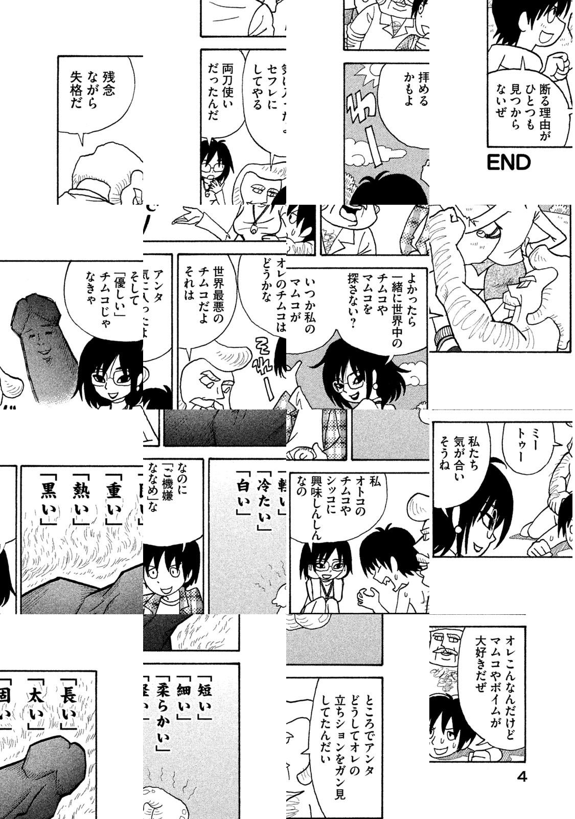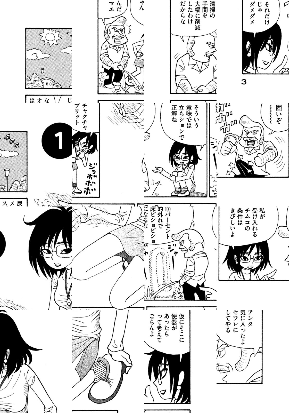 ずのーん!ジャスジャス!ザーン!バローム! 孤高のショート職人・榎本俊二が放出する濃密ギャグ! ミツオ&そう太&マリヨ、品性ゼロ以下の3人組が縦横無尽にかけまわる大活劇! アディオス、アミーゴ。