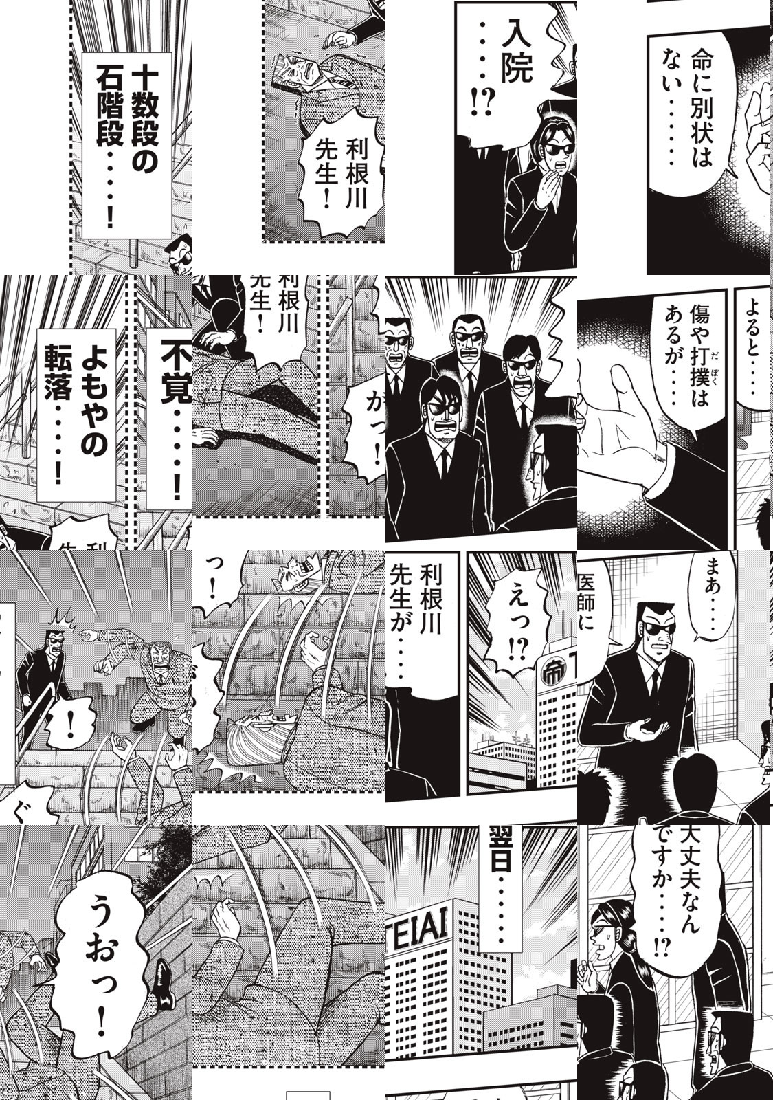 帝愛グループ会長・兵藤和尊の命で、債務者たちによる「死のゲーム」の企画を任された幹部・利根川幸雄!! 早速、企画会議を開く利根川を待っていたのは、受難‥!! 煩悶‥!! そして絶望‥!! 会長と黒服の間で苦悩する利根川を描く、悪魔的スピンオフ、始動・・・・!!