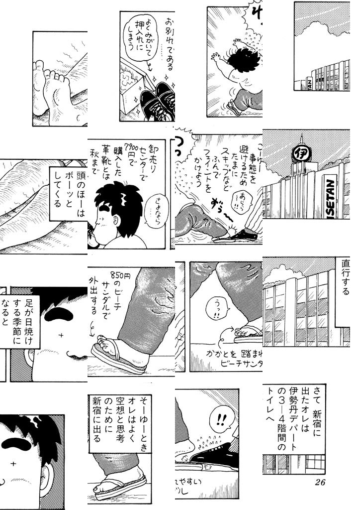 大東京で暮らすビンボーに欠かせないグッズとは? しんぶんし、あきかん、でんきぽっと、わりばし、かみぶくろ、そして「靴の卸売りセンター」で購入した1900円の革靴である。靴はいつもピカピカに磨いておくこと! こうすればビンボーが前近代的なものから、超近代的な思想とファッションを取り込んだライフスタイルとして確立するのである……。まるで歳時記のような、四季を感じる楽しいビンボー生活マニュアル、お教えします!!