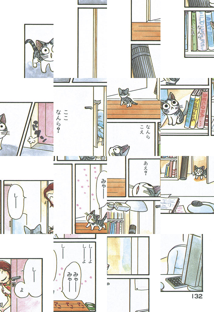 初めてのお散歩で迷子になった子猫が、親切な山田家に拾われ、落ち着くまでのストーリー。山田家でチーという名前をつけられた子猫が、新しいお家を自分の「おうち」として認識するまでを描く。