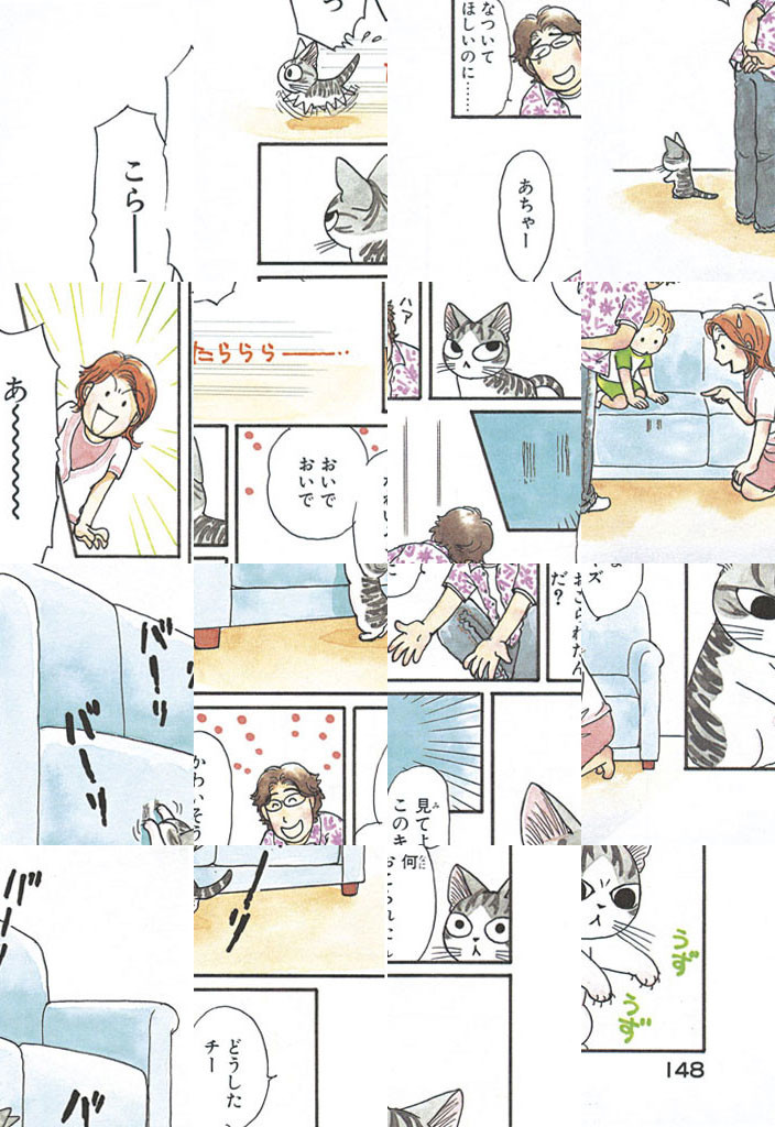 初めてのお散歩で迷子になった子猫が、親切な山田家に拾われ、落ち着くまでのストーリー。山田家でチーという名前をつけられた子猫が、新しいお家を自分の「おうち」として認識するまでを描く。