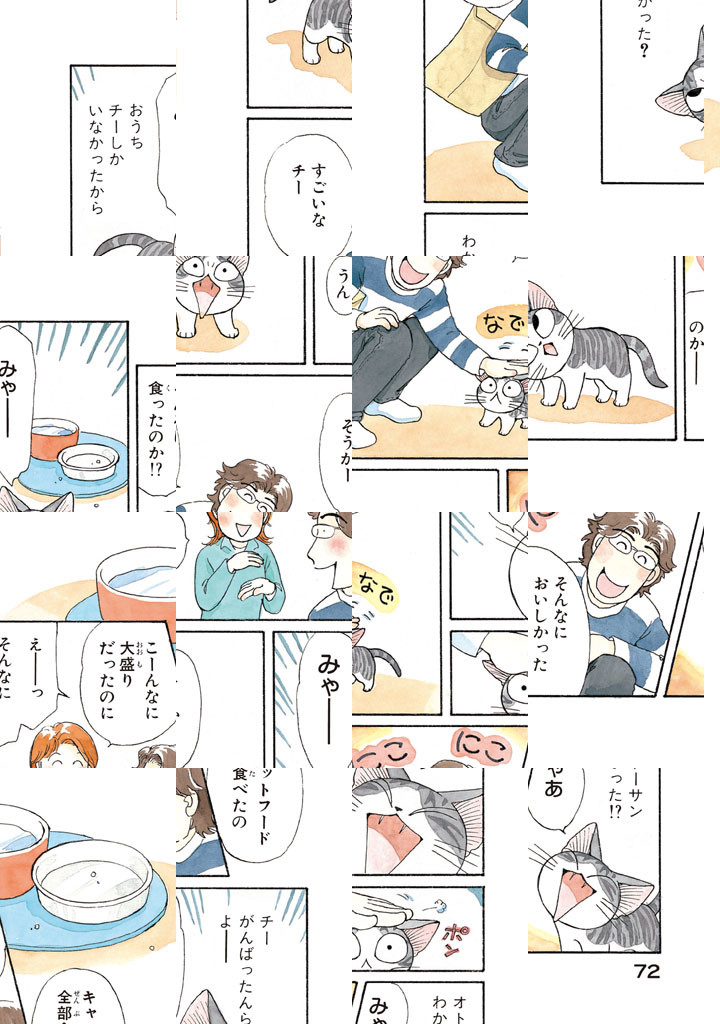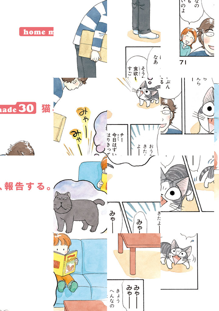 初めてのお散歩で迷子になった子猫が、親切な山田家に拾われ、落ち着くまでのストーリー。山田家でチーという名前をつけられた子猫が、新しいお家を自分の「おうち」として認識するまでを描く。