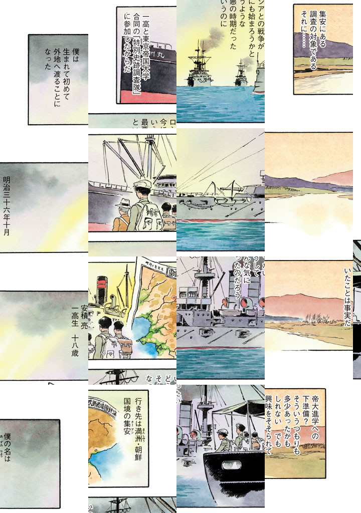 時は1903年。日露戦争開戦の半年前、朝鮮半島に近い満洲の地に日本からの学術調査隊がいた。彼らの目的は「好太王碑」。古代朝鮮半島の歴史、日朝関係を記したとされるこの碑文の研究のため、嬉田教授率いるこの調査隊に参加していたのが、本編の主人公、一高の学生・安積亮である。まだ何者でもない自分に悩む安積が研究自体に疑問を持っていたところ、調査隊は馬賊による襲撃を受けた! 果たして彼らの運命は――!?