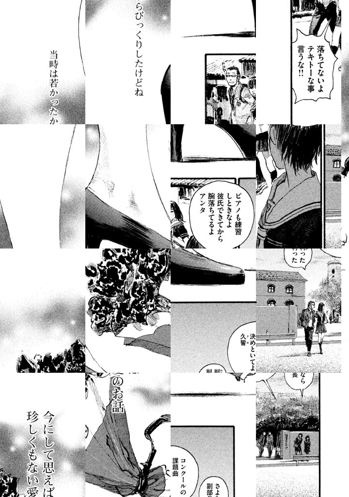 『久誓院家最大のショウ』旧家を舞台に繰り広げられる奇妙な父娘愛。『制服は脱げない』女子高生が世相を斬る風刺ショートコミック。『ブリギットの晩餐』妹の身代わりとしてなった少女の奮闘記。『シズルキネマ』駆け出しマンガ家・ケンの同棲物語。『下層戦略 鏡打ち』実録麻雀漫画。『青春じゃんじゃかじゃかじゃか』青臭さ満点の青春告白ストーリー。商業誌未発表だった幻の短編。『エメラルド』作者初の西部劇。