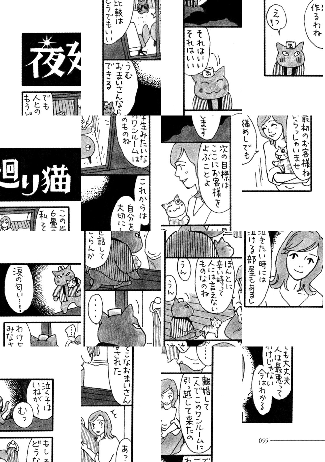 ある夜、Twitterから生まれた8コマ漫画「夜廻り猫」。涙の匂いをたどって心に寄り添うためにやってくる夜廻り猫こと遠藤平蔵。傷つき涙する者を励ますために毎夜、現れる。そんな平蔵と共に夜廻りをする子猫と陰から見守る片目の猫・ニイ、飼い主を振り回すワガママな猫・モネなど個性豊かなキャラクターが勢ぞろい!!