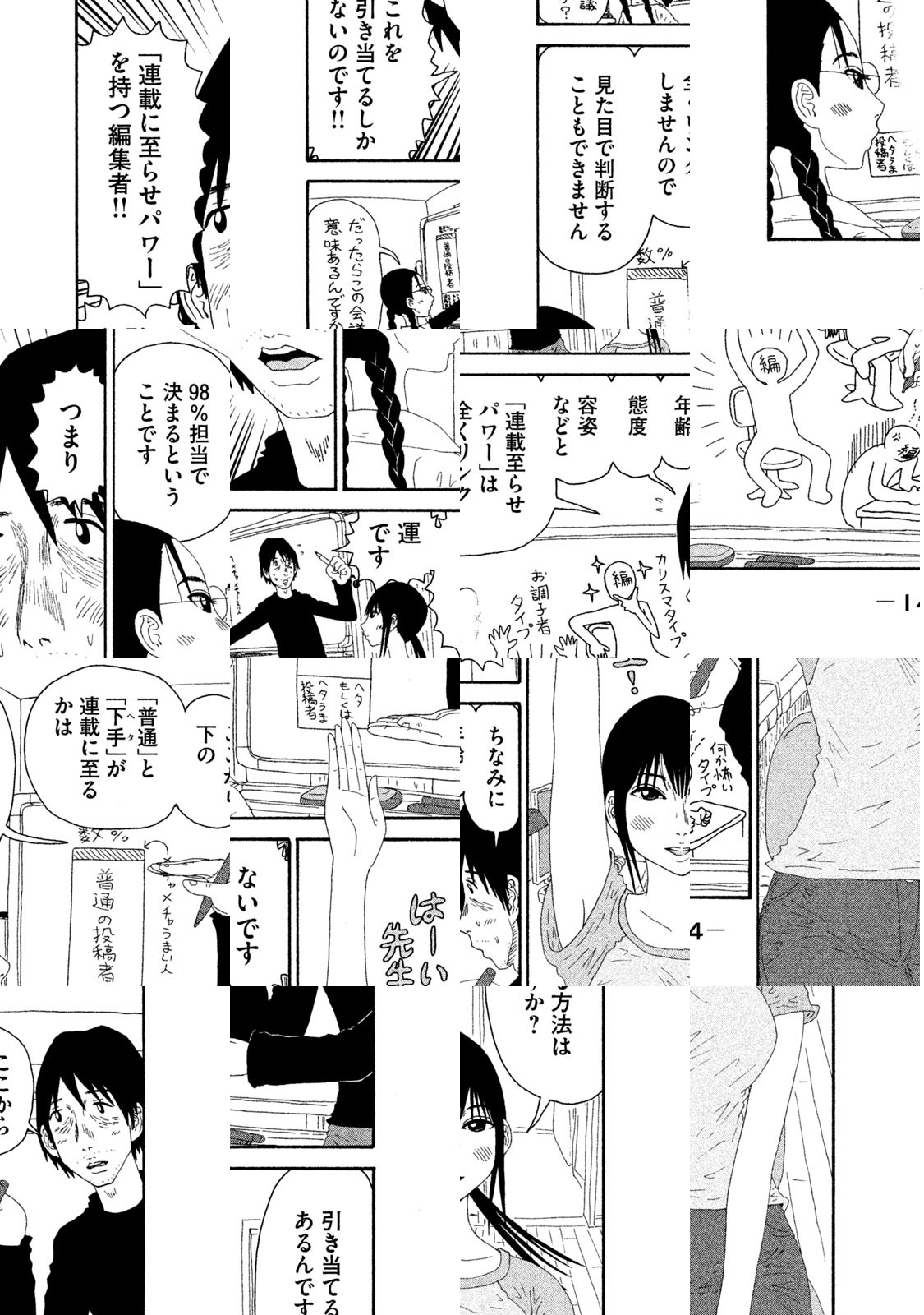彼は終わった漫画家です。才能が枯渇しています。10年前の少年誌での初連載が小ヒットし知名度がゼロではありません。が、現在の仕事は地味な月刊誌での編集者主導の連載1本のみです。が、単行本第1巻の売り上げ悪かったため、最後の砦のこの連載も風前の灯、打ち切り寸前です。漫画界のネガティブキング・福満しげゆきが描く才能枯渇終わった漫画家漫画。