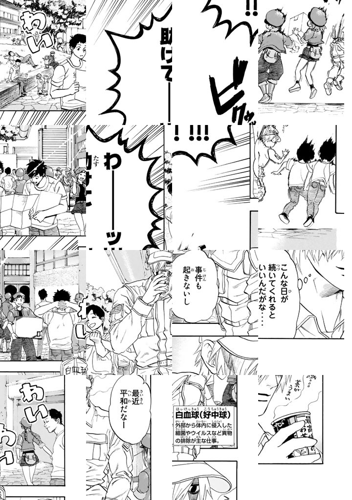 肺炎球菌! スギ花粉症! インフルエンザ! すり傷! 次々とこの世界(体)を襲う脅威。その時、体の中ではどんな攻防が繰り広げられているのか!? 白血球、赤血球、血小板、B細胞、T細胞...etc.彼らは働く、24時間365日休みなく! 大ヒット「細胞擬人化漫画」の原典はこちら!