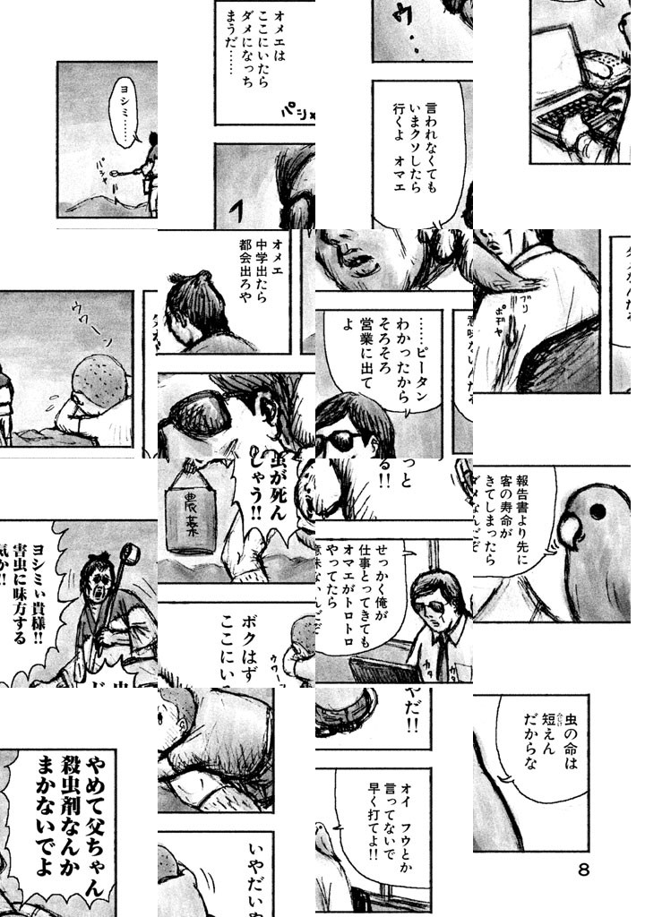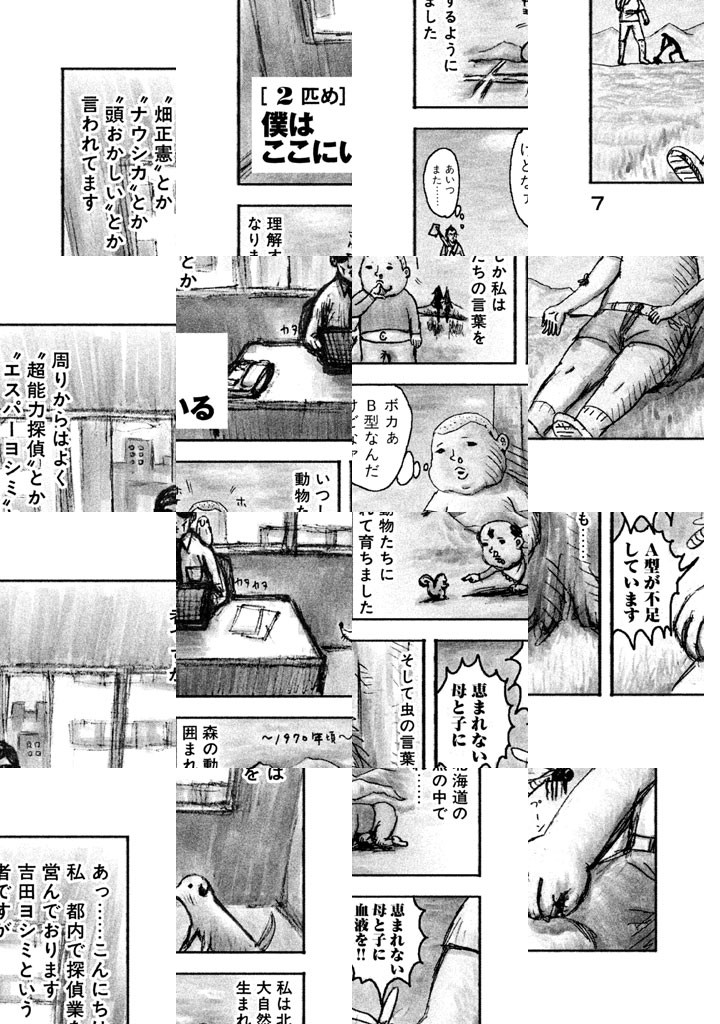 ヨシミ探偵社は都内で唯一の昆虫専門探偵社。どんな生き物とでもコミュニケーションをとれるヨシミ探偵が昆虫関係全般の依頼を請け負っちゃうぞ。そんなヨシミ探偵をサポートする心強い助手は犬とインコ。おやおや、なんだか深刻な羽音を響かせてカブトムシのメスが依頼にやって来たぞ。