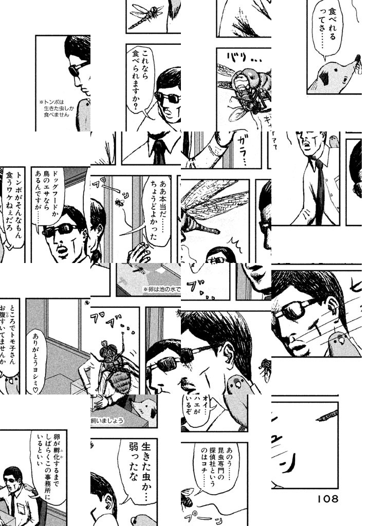 ヨシミ探偵社は都内で唯一の昆虫専門探偵社。どんな生き物とでもコミュニケーションをとれるヨシミ探偵が昆虫関係全般の依頼を請け負っちゃうぞ。そんなヨシミ探偵をサポートする心強い助手は犬とインコ。おやおや、なんだか深刻な羽音を響かせてカブトムシのメスが依頼にやって来たぞ。