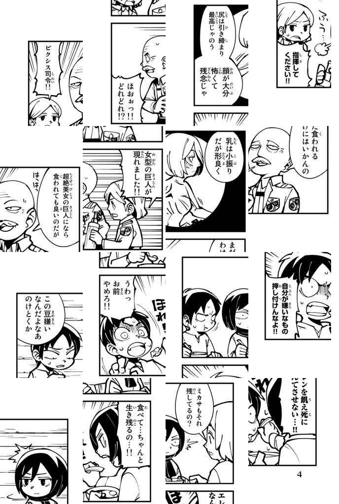 あの『進撃の巨人』が4コマ漫画になって登場! エレン、ミカサ、リヴァイが小さくなって大暴れ!? 爆笑必至! 『進撃の巨人』スピンオフ4コマ、待望の第1巻!!