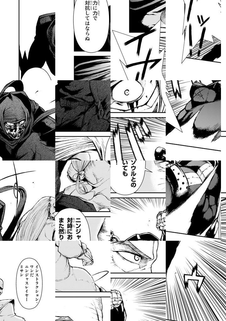 サイバネティクス、電子ネットワークが過剰に発展してもなお誰もが地を這うように生きる時代、ネオサイタマで一人の赤黒き復讐者が生まれた。その名はニンジャを殺す者・ニンジャスレイヤー!!ブラッドレー・ボンドとフィリップ・N・モーゼズによるサイバーパンクニンジャ小説を少年漫画めいたアトモスフィアで描いたコミカライズの幕が、いま上がる!!