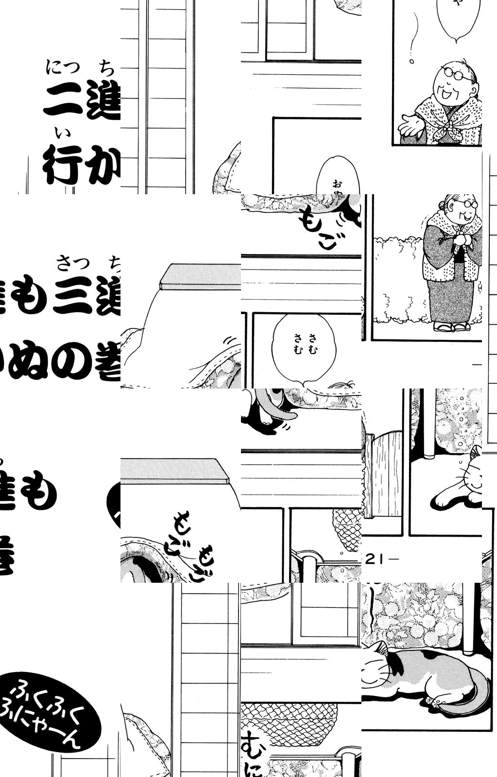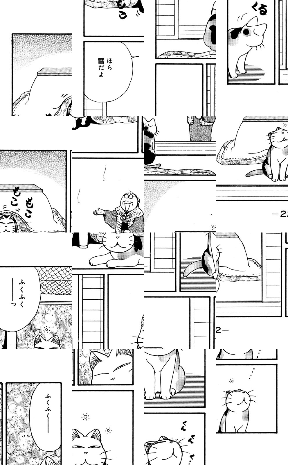 和猫ふくふくとおばあちゃんの四季折々のんびりライフを描く、大人気猫マンガ。 食いしん坊でふっくらしているふくふくの、時にふてぶてしく、時に脱力しきっている姿を見ているだけで癒されます♪ ふくふくと、たまにはゆ~っくり、まったりしませんか?
