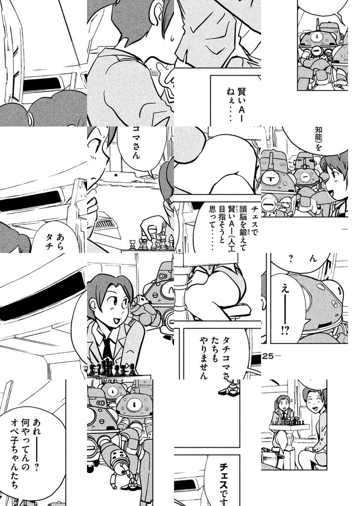 テレビアニメ『攻殻S.A.C.』の大人気キャラ・タチコマを単独で漫画化。人工知能(AI)を搭載した9体の思考戦車・タチコマが、様々なことを「思考」するショート作品。お得意の兵器や銃だけじゃなく、温泉や家族など身近なこともぺちゃくちゃしゃべり、みんなを深遠なる思考の世界へ導くぞ!!