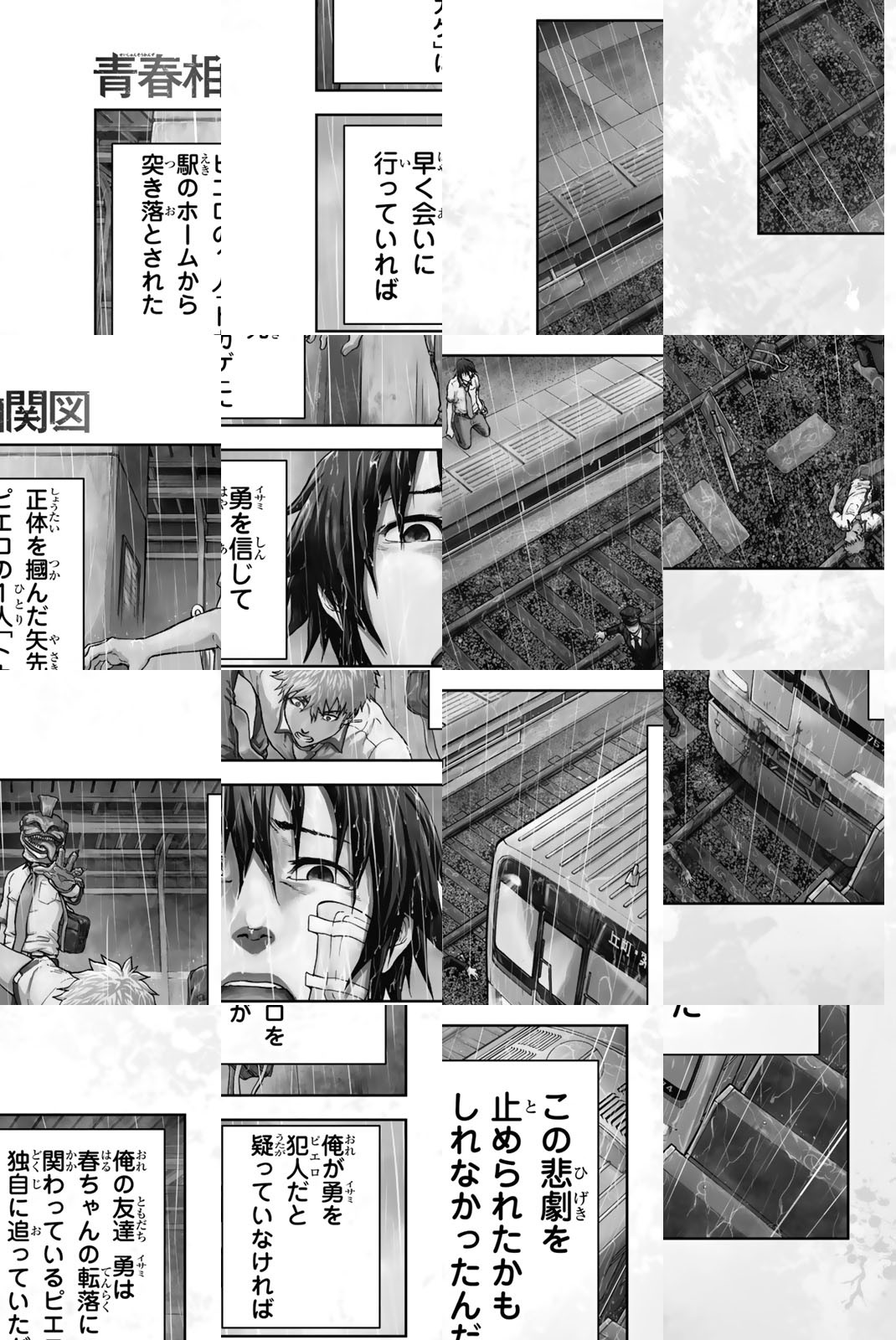 5人のピエロに私は殺される。朝日高校に通う高校3年生、七崎 青。恋人である二階堂 春との明るい日常は突如、音を立てて崩れ落ちた。春が屋上から転落し、一命を取りとめるも昏睡状態になってしまう。幸せなはずの彼女は何故転落したのか!? 彼女の残した人物相関図に記されたクラスに潜む5人のピエロ。青は級友全員を敵に回してでも真相を暴き、復讐することを決意する。