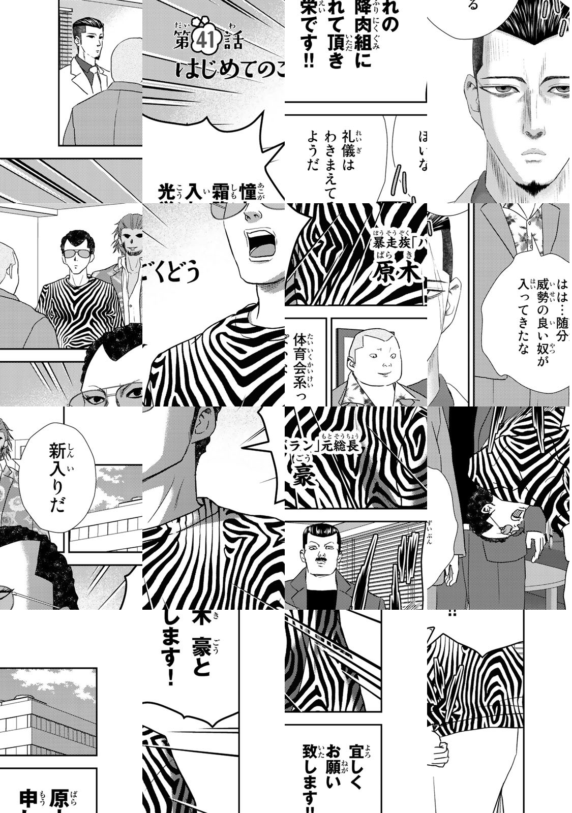 暴力団「霜降肉組」の新人組員・紺田 照(こんだ てる)、高校3年生。彼が任侠道のほかに心血を注ぐのは「お料理」! 切った張ったの世界で生きながら、硝煙にふとサバの塩焼きを思ってしまう…そんな紺田の今日の晩ご飯は!?