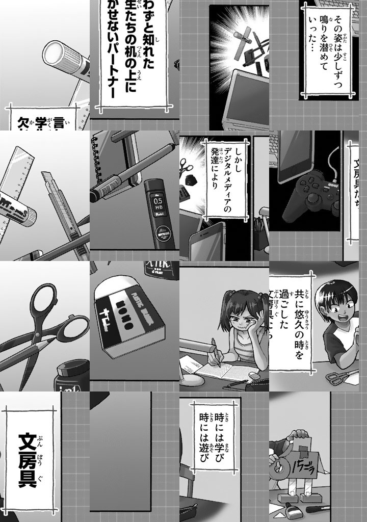 デジタル全盛の現代。えんぴつ、消しゴムだのの時代は終わった……!? まさか、とんでもない! 進化を止めない魅惑の“文房具”たちの世界を柿心地さららがナビゲート! 第1巻には、消えるボールペン、針なしステープラー、超便利マグネットバー、キング・オブ・消しゴム、アニマルラバーバンド、芯の折れないシャープペン、イケメン付箋、魔法のインキ、サクサク切れるハサミが登場!!