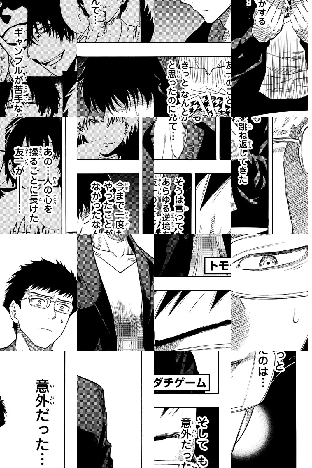 主人公の友一は4人の友達とともに、借金返済のため謎のゲームにのぞむ。友情さえあれば、おそろしく簡単なゲームのはずだった。そう、友情さえあれば‥。だが、誰かのおかした裏切りが疑心を生み、ゲームは息づまる心理戦となる!!