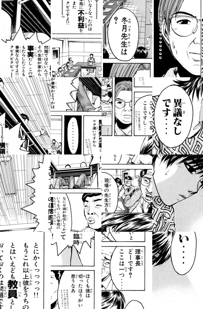 オレは教師になる!! 伝説残すくれーグレートな教師に‥‥!! 湘南で“鬼爆”と恐れられたコンビの一人、鬼塚英吉、わけあって教師やります! “Great Teacher Onizuka”伝説ついにスタート!!