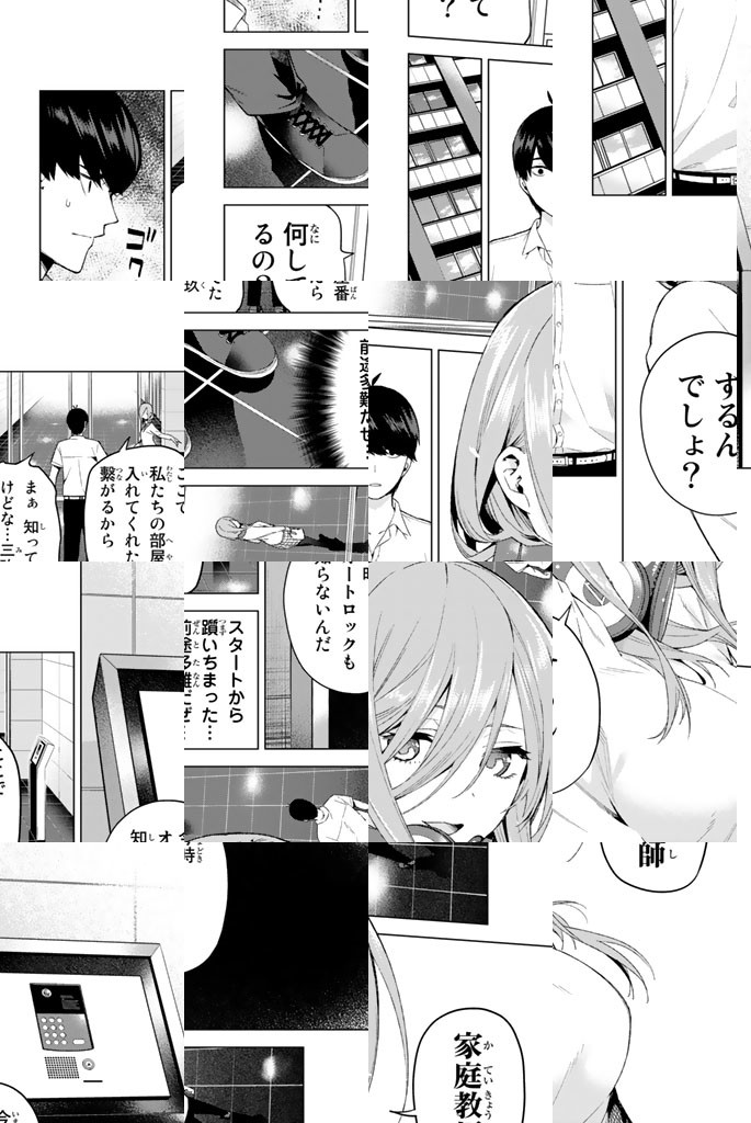 貧乏な生活を送る高校2年生・上杉風太郎のもとに、好条件の家庭教師アルバイトの話が舞い込む。ところが教え子はなんと同級生!! しかも五つ子だった!! 全員美少女、だけど「落第寸前」「勉強嫌い」の問題児! 最初の課題は姉妹からの信頼を勝ち取ること…!? 毎日がお祭り騒ぎ! 中野家の五つ子が贈る、かわいさ500%の五人五色ラブコメ開演!!