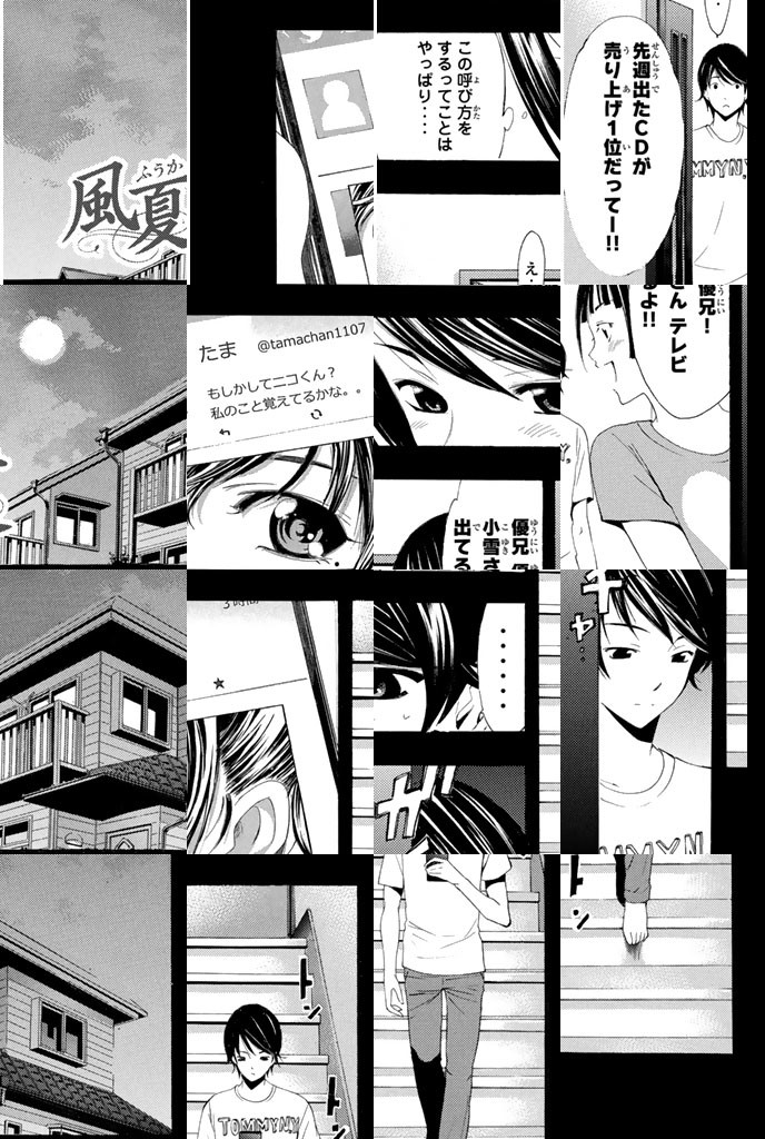 主人公・榛名優は、絶えずスマホを手放せない少年。彼が出会った少女、秋月風夏は、いまどき携帯電話を持っていない!! 最近、優がツイッターで繋がったのは、なんと大人気歌手の氷無小雪!!! ある日、優は風夏に誘われ小雪のライブへ! 実は、小雪と優は昔なじみなのだが、それを風夏に言えぬままライブの幕が上がる。その瞬間、小雪、優と風夏‥‥3人の視線と想いが交錯する!!