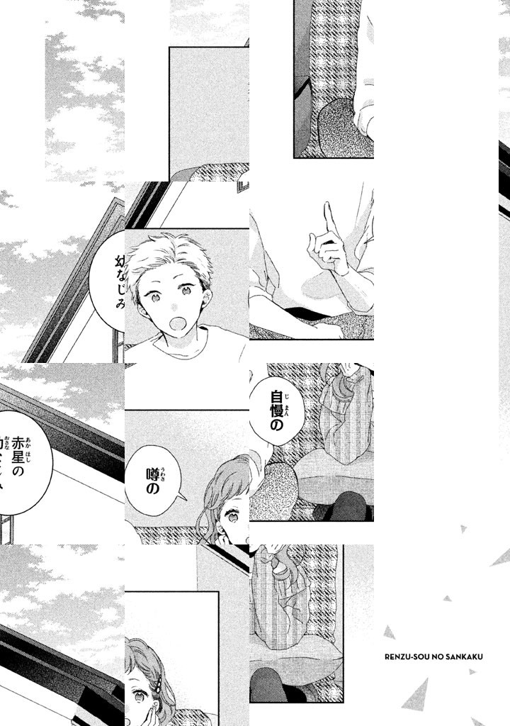 カメラが大好きな麻子は、写真部が有名な高校に進学するため、地元を離れ、さんかく屋根の下宿・蓮住荘で暮らすことに。そこには、優しい幼なじみの蛍、写真嫌いで無愛想な雨村がいて……? 『私のオオカミくん』の野切耀子が描くトライアングルラブ♪ 二人の男子とひとつ屋根の下、新生活始まります…!!