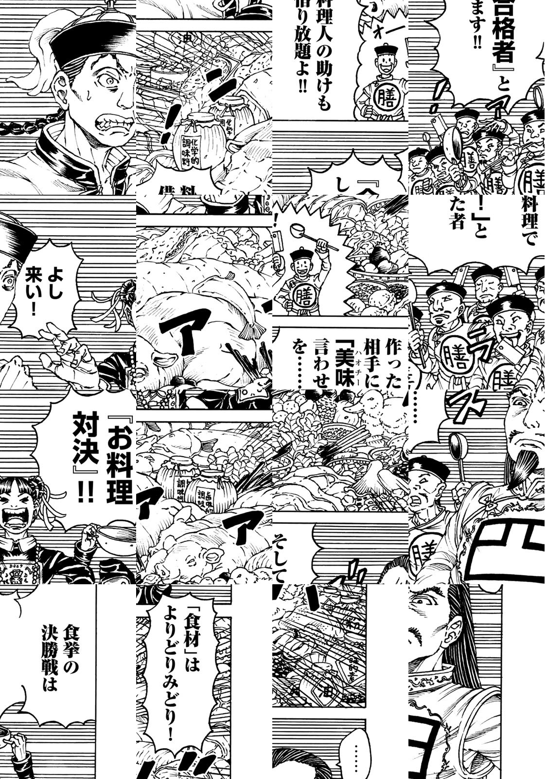 時は18世紀、清朝最盛期。主人公・乾貴道(通称:ケンちゃん)は、人類史上最難関の試験「科挙」に落ちてしまう。だが、謎の少女・暗娘に、旺盛な食欲を見込まれ、誘われた先は……なんと“世界の中心”紫禁城! そこでは、想像を絶するフードファイト「食挙」が行われていた…!! まさしく奇想天外奇妙奇天烈。いま、前代未聞の美食奇譚が幕を開ける!!