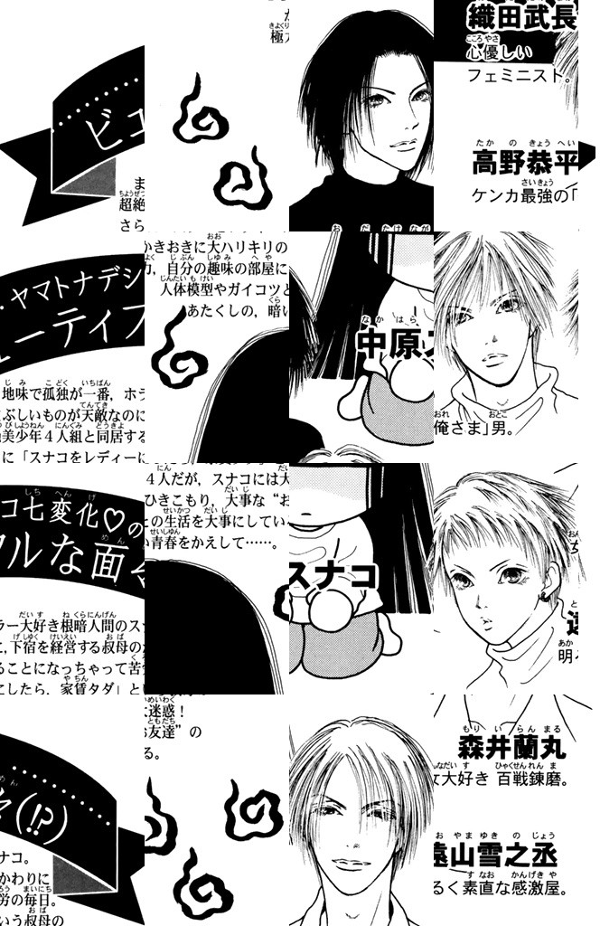 オシャレを捨てて、暗闇でスプラッタなホラー映画三昧。そんなスナコの平穏?な生活を侵食するカリスマ美少年4人組。彼らの目的はただ1つ、スナコを立派なレディーに仕立てること。だが、スナコにとって彼らはまぶしすぎた! ほとばしる鼻血! 最強無敵の暴走するビジュアル?漫画!