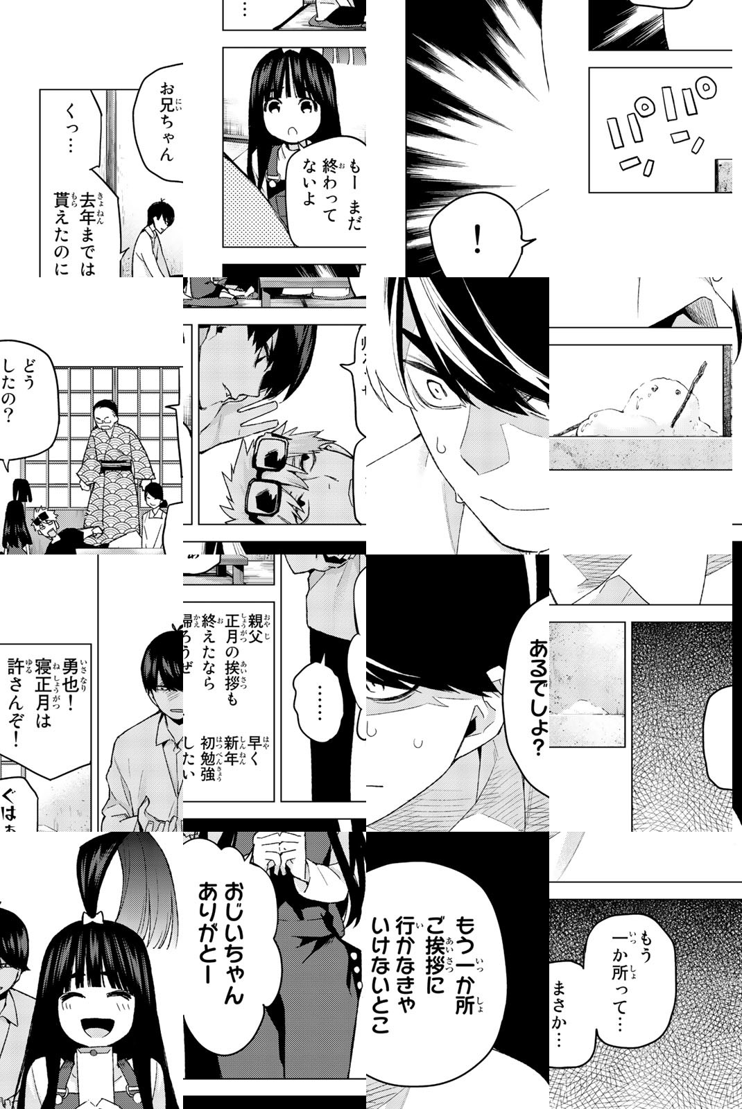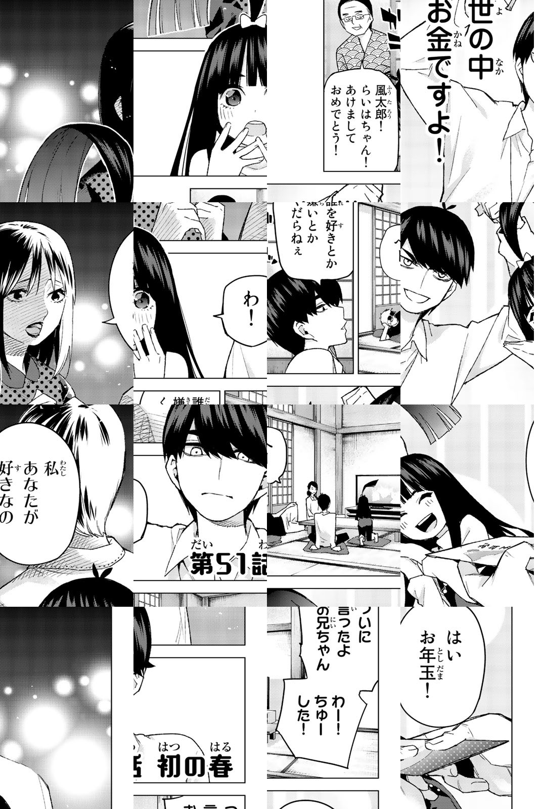 貧乏な生活を送る高校2年生・上杉風太郎のもとに、好条件の家庭教師アルバイトの話が舞い込む。ところが教え子はなんと同級生!! しかも五つ子だった!! 全員美少女、だけど「落第寸前」「勉強嫌い」の問題児! 最初の課題は姉妹からの信頼を勝ち取ること…!? 毎日がお祭り騒ぎ! 中野家の五つ子が贈る、かわいさ500%の五人五色ラブコメ開演!!