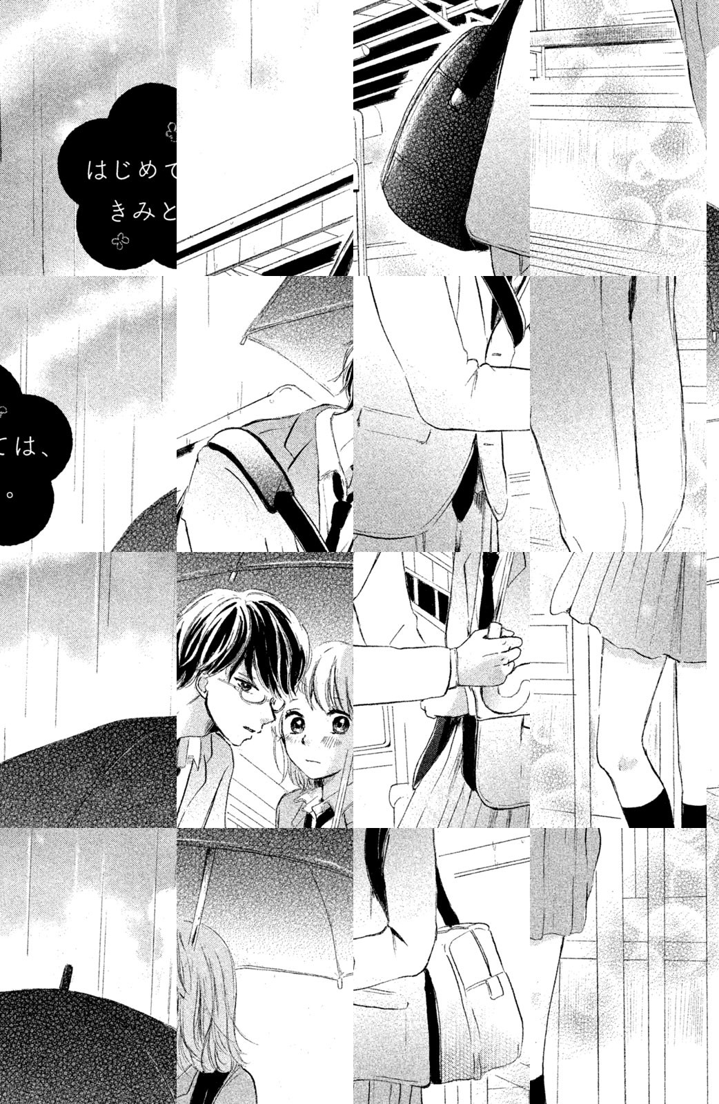 校舎裏、プール、外階段…学校の片隅で今も誰かが一生に一度の恋をしている。ぼっち飯の恵那は、ファンから隠れる巽先輩を助けたことをきっかけに、内緒のランチをすることに!?(「はじめてのキス」)。吹奏楽部の莉奈は、階段の踊り場で、放課後いつも陸上部の西宮を待っている。今日こそ告白したいけど…(「君待ちキャンディ」)他、いろんな2人の、“生まれていちばん幸せな大事件”4編を集めた珠玉の青春オムニバス!