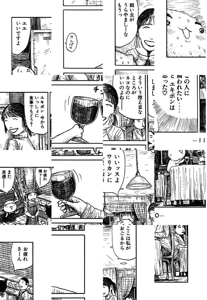 ただ今、お仕事中ニャクズで酒飲み、おまけにふしだら。6畳1間のフリーターご主人・あけみちゃんのために、超ケナゲな働き猫・ユキポンが、せまい額に汗して、今日も一生懸命がんばっているのです。