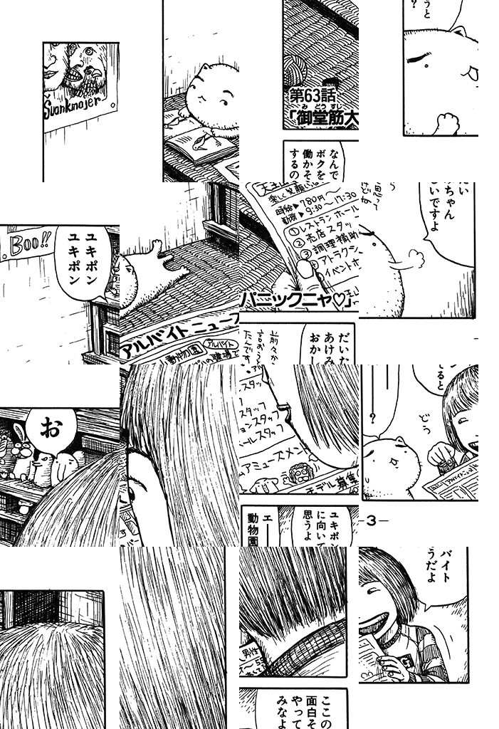 ただ今、お仕事中ニャクズで酒飲み、おまけにふしだら。6畳1間のフリーターご主人・あけみちゃんのために、超ケナゲな働き猫・ユキポンが、せまい額に汗して、今日も一生懸命がんばっているのです。