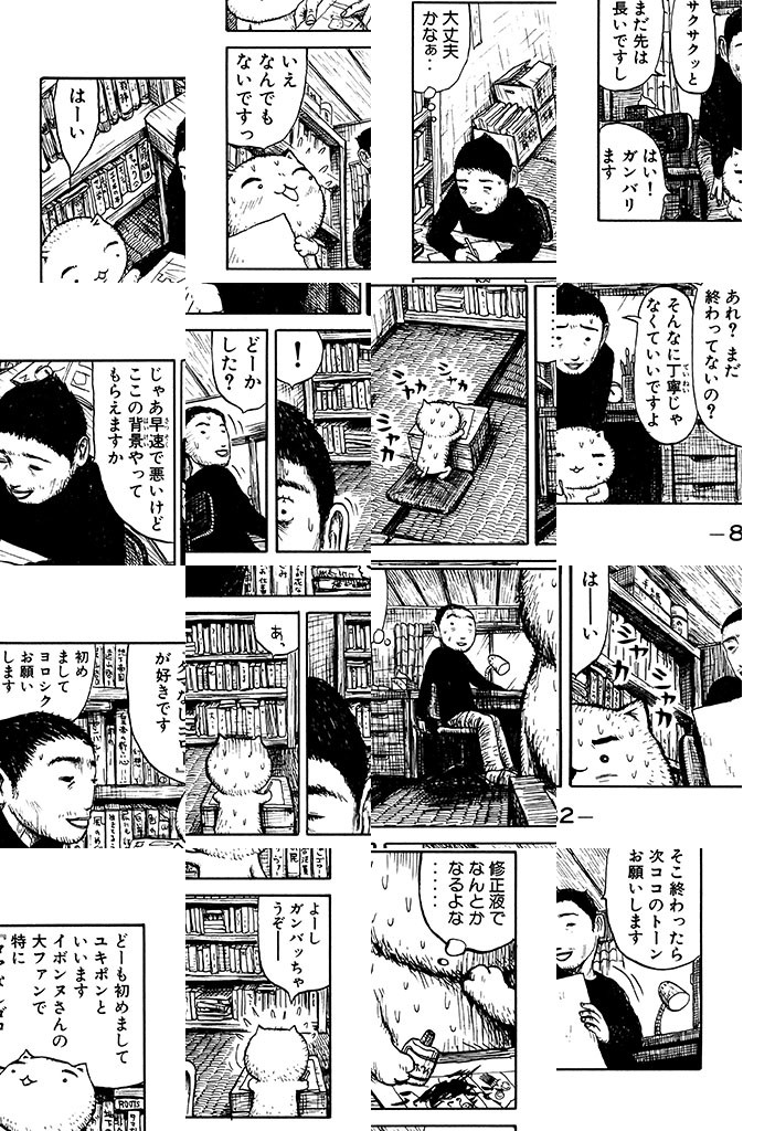ただ今、お仕事中ニャクズで酒飲み、おまけにふしだら。6畳1間のフリーターご主人・あけみちゃんのために、超ケナゲな働き猫・ユキポンが、せまい額に汗して、今日も一生懸命がんばっているのです。