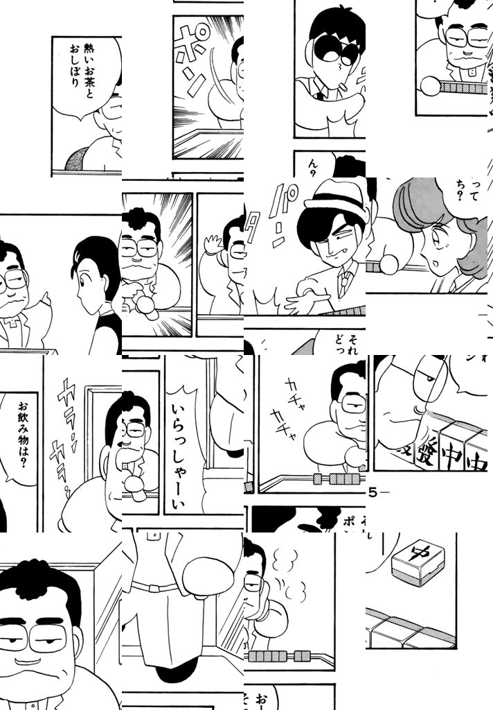 心地良い連続音と共に、やってきました持杉(もちすぎ)ドラ夫(お)!! 次々と現れる迷走雀士をものともせず、タタンタタンタンタン♪とサンバのリズムに乗って華麗に牌(パイ)を引く姿は、もはや麻雀が芸術の域まで達したような(!?)錯覚すらおぼえてしまう。息もつかせぬギャグの嵐があなたを襲う! 世紀のバトルロイヤル開始! これぞ、麻雀漫画の真骨頂!!