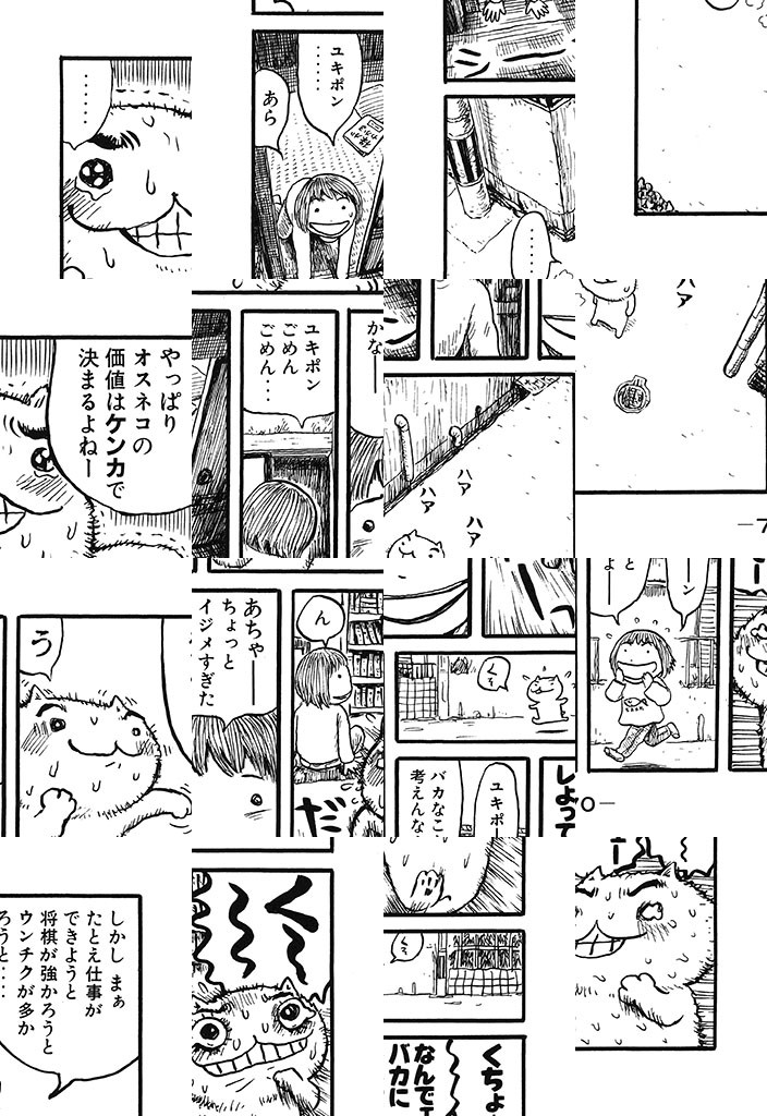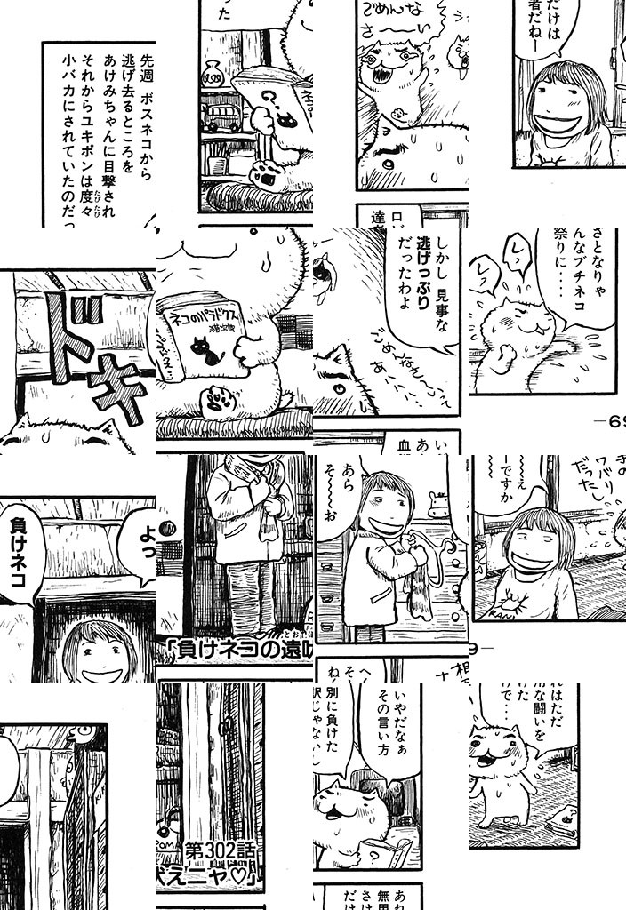 ただ今、お仕事中ニャクズで酒飲み、おまけにふしだら。6畳1間のフリーターご主人・あけみちゃんのために、超ケナゲな働き猫・ユキポンが、せまい額に汗して、今日も一生懸命がんばっているのです。