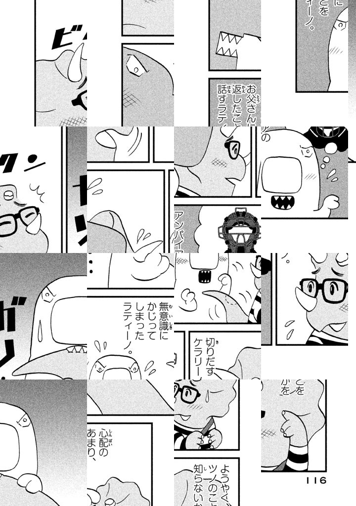 1巻のラティーノは……ショッピングに行って、風邪をひいて病院に行って、野球をして、刑事になって、スカートをはいて、サンタのお手伝いをして、音楽フェスをプロモートして、シッポの万能性を見せつけて、ウインタースポーツをして、ロン毛にして、くのいちになって、高梨くんに初恋をして、メカラティーノに邪魔されて、サッカーをして、宇宙に行って、ベビーシッターになりました。