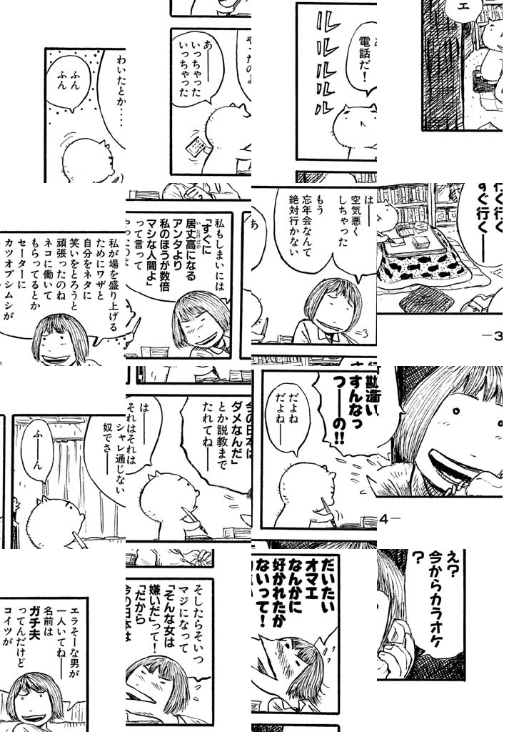 ただ今、お仕事中ニャクズで酒飲み、おまけにふしだら。6畳1間のフリーターご主人・あけみちゃんのために、超ケナゲな働き猫・ユキポンが、せまい額に汗して、今日も一生懸命がんばっているのです。