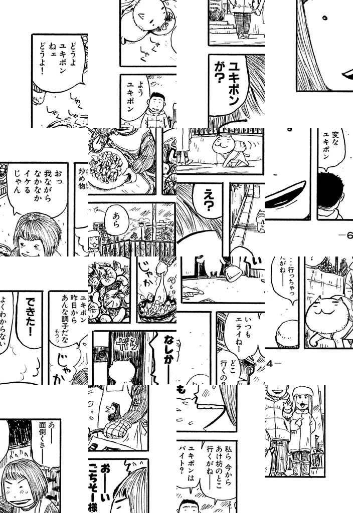ただ今、お仕事中ニャクズで酒飲み、おまけにふしだら。6畳1間のフリーターご主人・あけみちゃんのために、超ケナゲな働き猫・ユキポンが、せまい額に汗して、今日も一生懸命がんばっているのです。