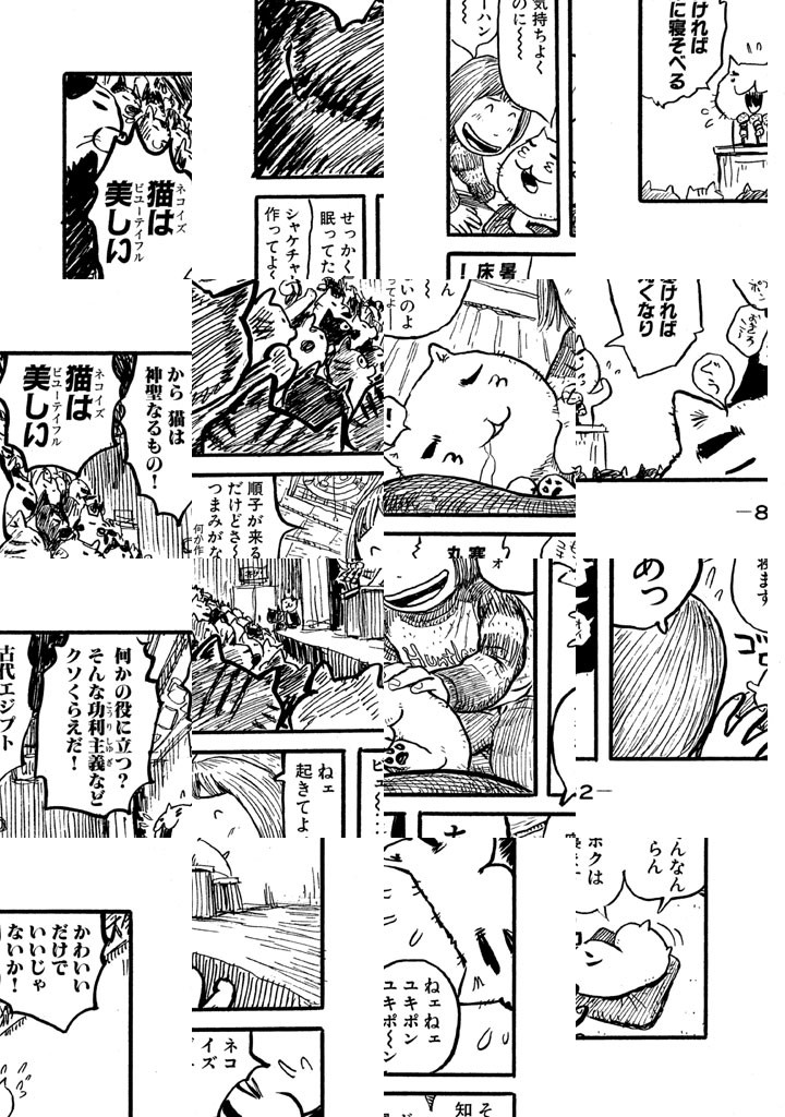 ただ今、お仕事中ニャクズで酒飲み、おまけにふしだら。6畳1間のフリーターご主人・あけみちゃんのために、超ケナゲな働き猫・ユキポンが、せまい額に汗して、今日も一生懸命がんばっているのです。